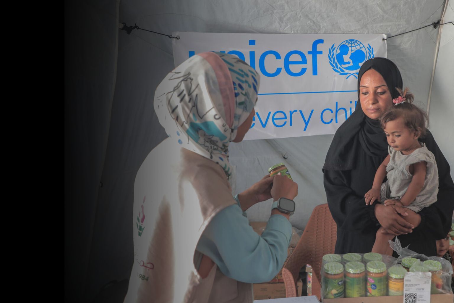 And in just one recent week, we distributed more than 520,000 jars of baby food, three million diapers and 6,000 hygiene kits. When aid convoys are slowed, we give cash directly to families to purchase items in local markets – currently 100,000 people are assisted with cash every month.