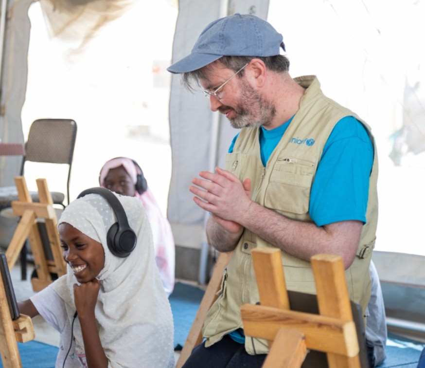 Of course, not every child can reach a centre. Some are displaced again and some live far from any safe building. This is why UNICEF also uses the “Learning Passport”; a digital platform used in the classroom but designed so children can keep learning even when schools close.