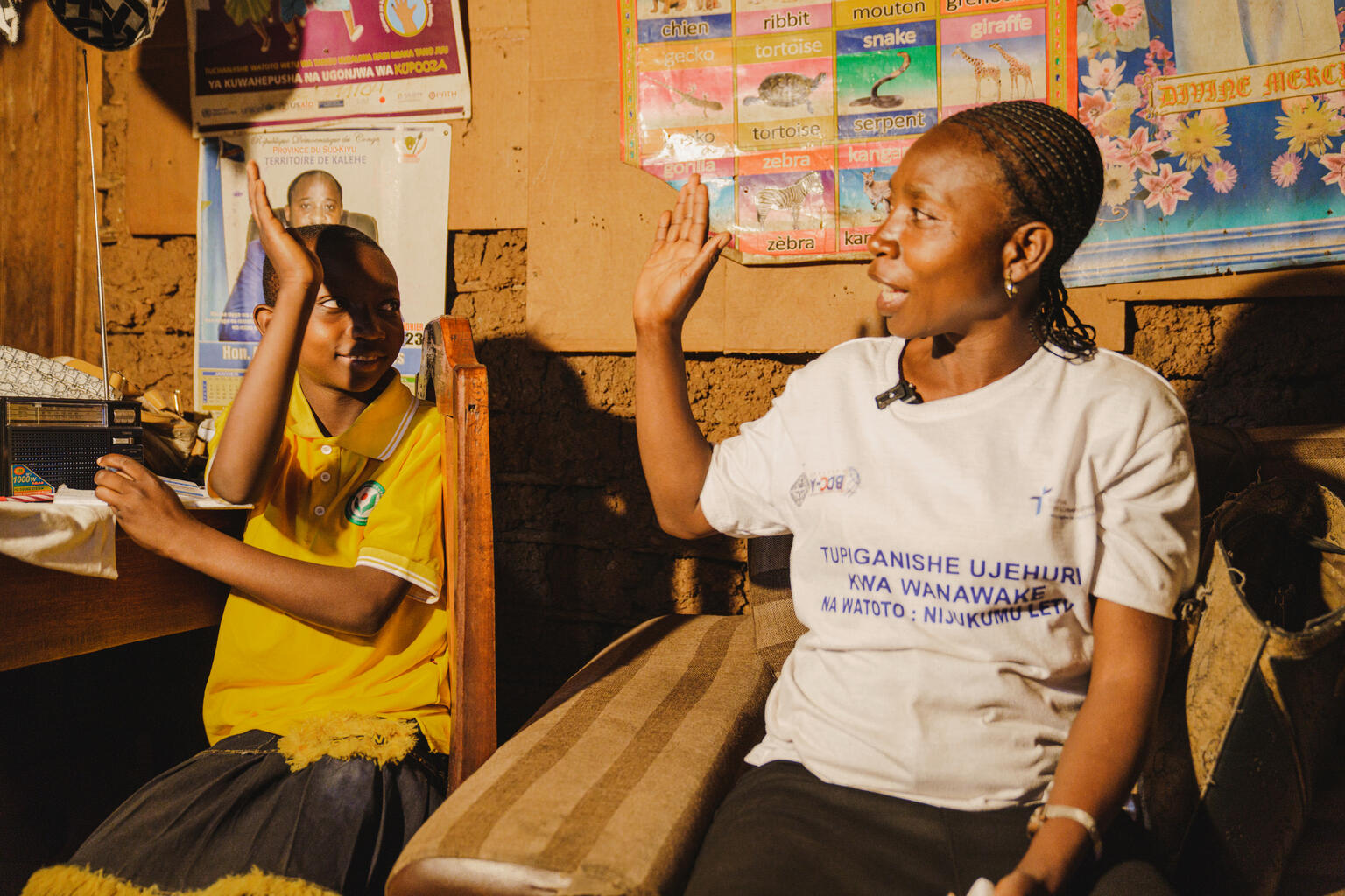 At the end of the day, learning continues at home. For 30 minutes, a class is broadcast on a local radio station, giving children the chance to revise.