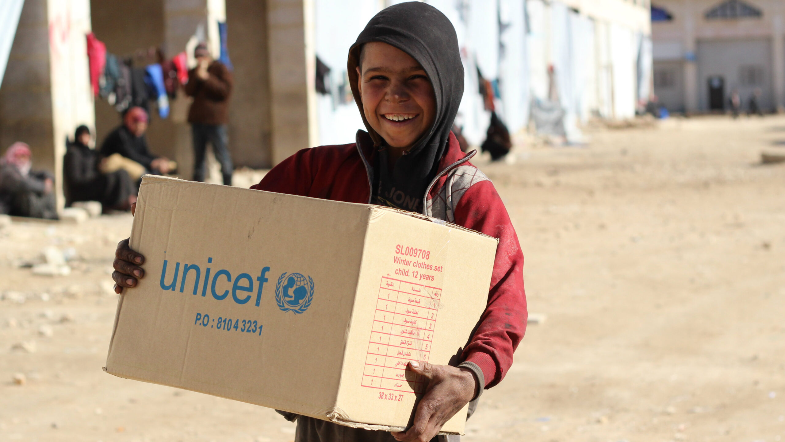 For Ahmed and the camp in Jibreen, our supporters have made such a difference in their lives. Now clean water is being trucked in, supplies of food and medicine are available, schools are being run and work is being done to make the warehouse warmer and more liveable. As winter draws closer thousands of children have received UNICEF clothing kits like the one Ahmed did.